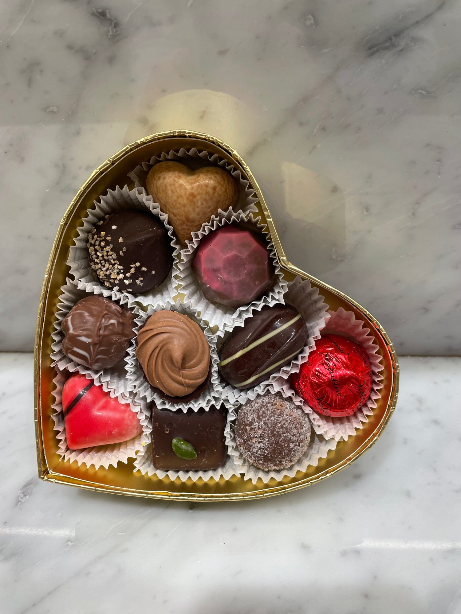 En nydelig hjerteske fylt med 10 nydelig konfektbiter. Velg farge.